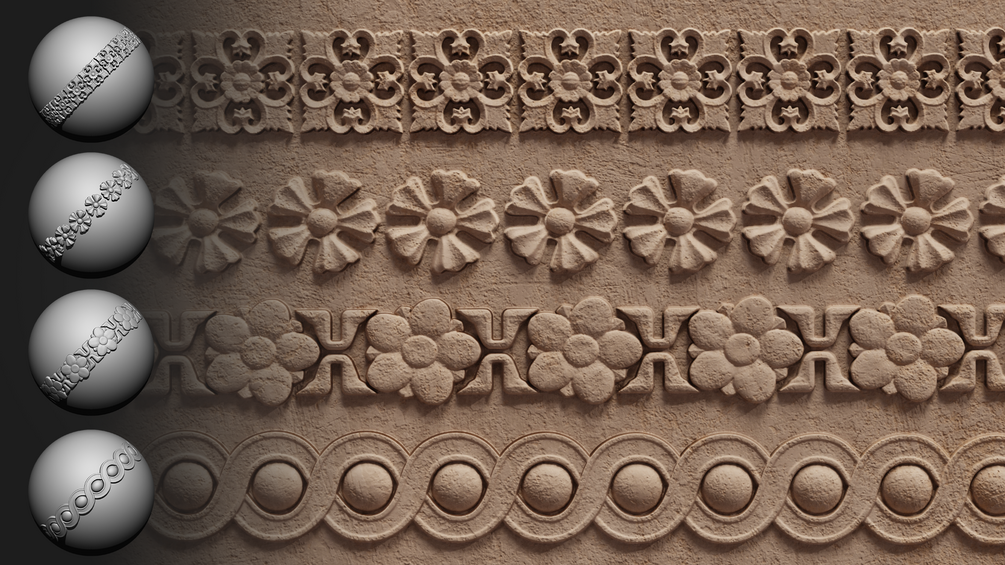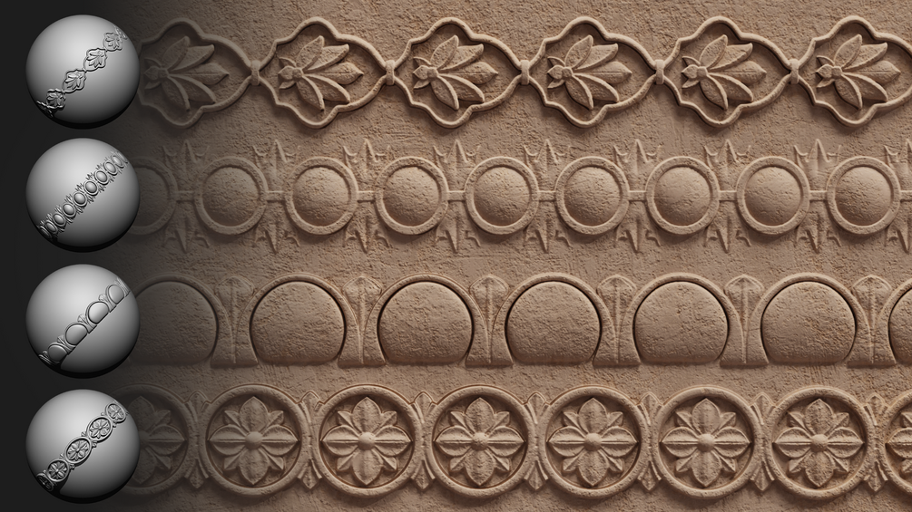 ⚜️⚜️ 30 Ornament Trim Brush (Path Tool,Zbrush Roll Brush,4K Seamless Alpha 16Bit) - VOL 01 ⚜️⚜️