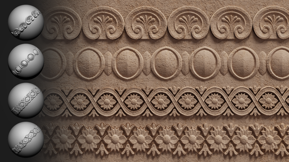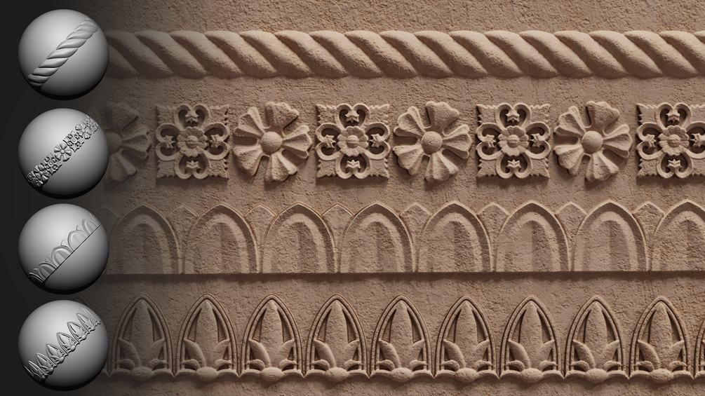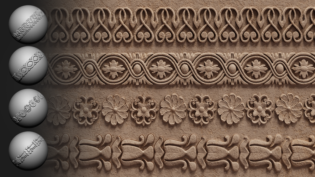- 30 Roll Brushes for ZBrush – Sculpt ornament trims easily and precisely.