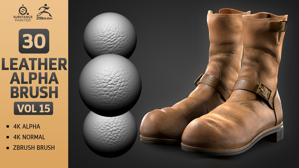- 30 ZBrush Brushes – Designed for precision and ease in sculpting leather details.