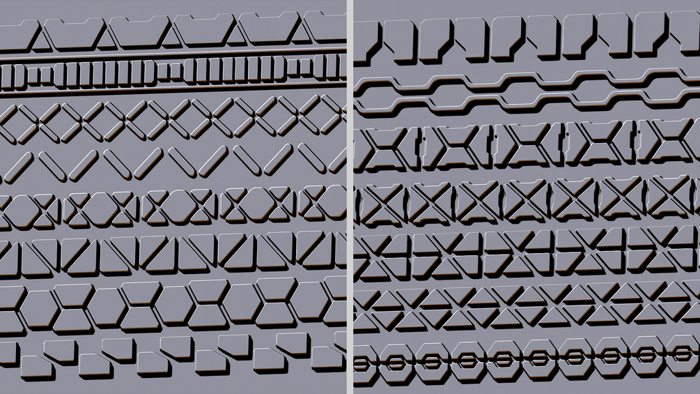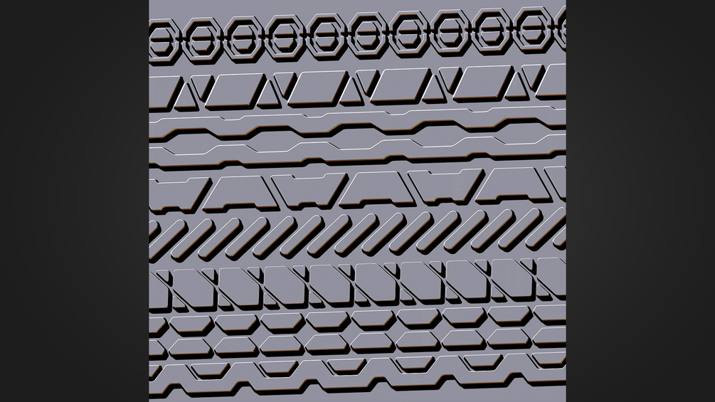55 Hard Surface Trim Brush (ZBrush & Substance Painter) VOL 01 - HardSurface Library VOL 01